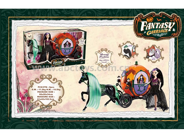 ABC-751075Static horse pumpkin car 29cm real doll pumpkin car 2-color flash (2 No. 5 AA batteries, not include -