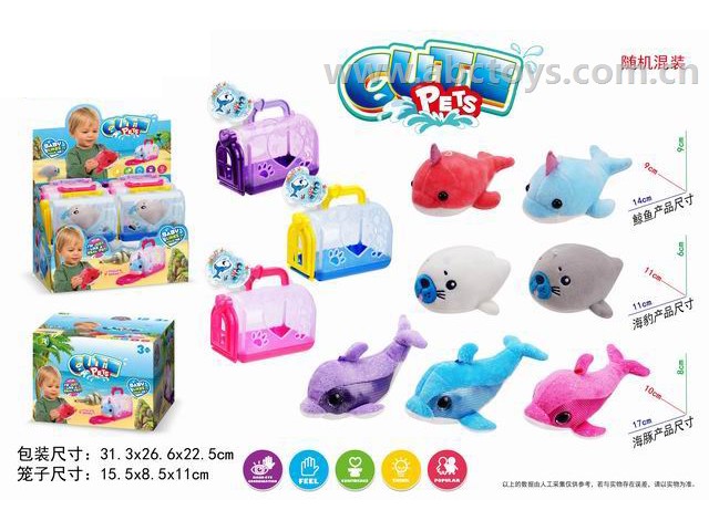 ABC-604010SUBMARINE ANIMAL PLUSH DOLL PET CAGE 12PCS (GCC) -