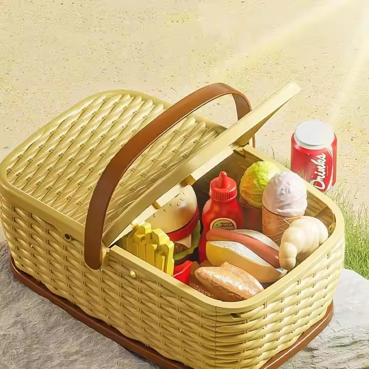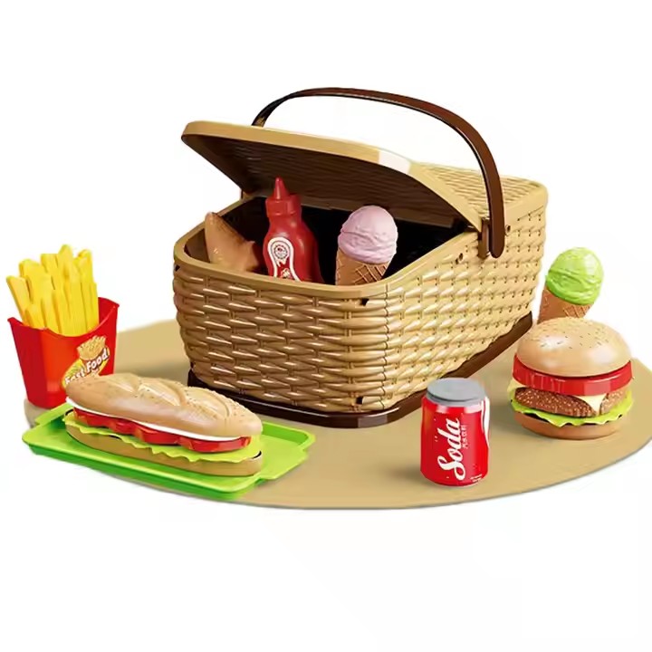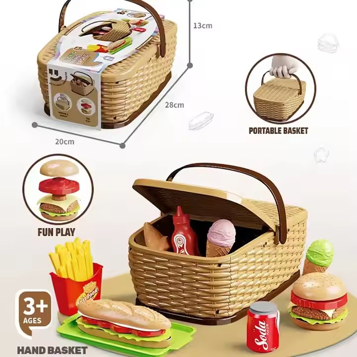 20pcs Fast Foods Basket Pretend Play Food House Toy Set Bread French Fries With Shopping Basket for Kids Gift