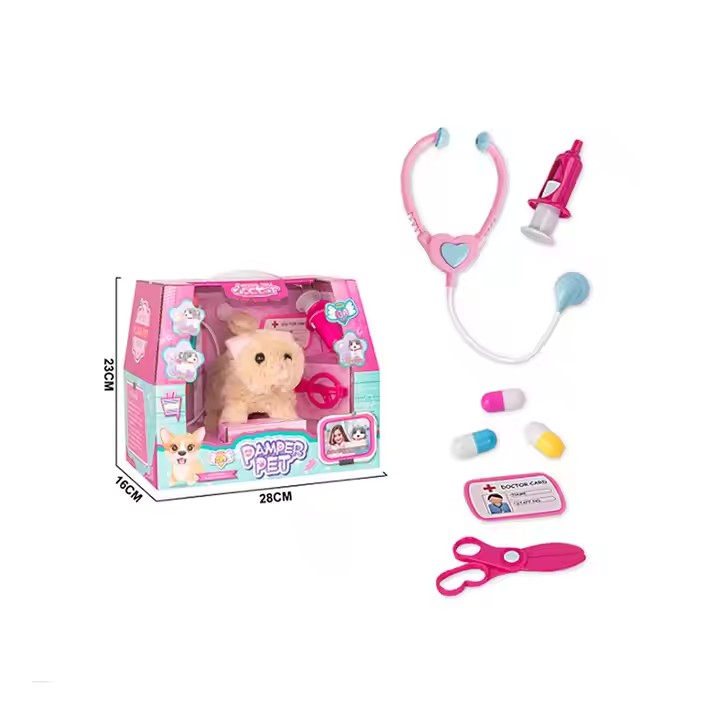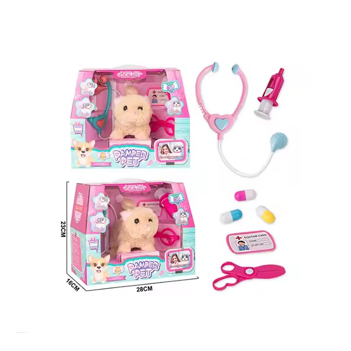 Electric Cat Medical Kit Set Toy Interactive Meow Walk Tail Wagging Electronic Plush Toys Cat