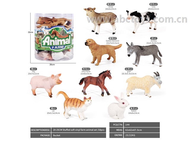 ABC-95463620-25CM STUFFED SOFT VINYL FARM ANIMAL SET /18PCS -