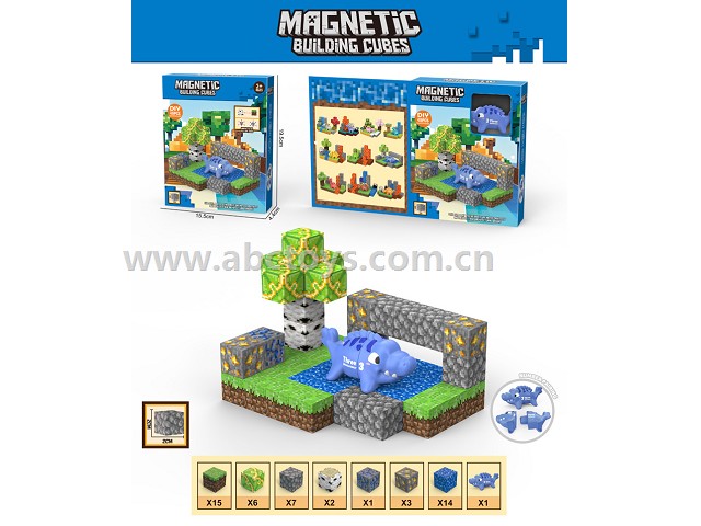 ABC-2142181DIY MAGNETIC BLOCK BUILDING SCENE DINOSAUR PAIRING 49PCS